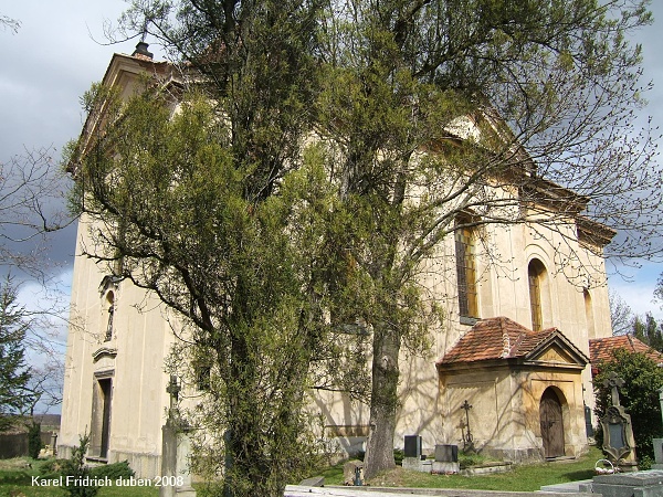 Zděný jednolodní kostel s pravoúhlým presbytářem, čtvercovou sakristií a obdélnou předsíní. Součástí souboru je renesanční zvonice, pozemek hřbitova s márnicí a náhrobky. Barokní kostel z 18. st. pravděpodobně od K. I. Dinzenhofera.